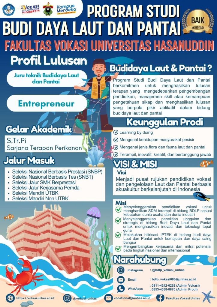 Malaysia — Kabar membanggakan datang dari Program Studi Budidaya Laut dan Pantai (BDLP), Fakultas Vokasi…